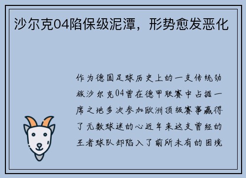 沙尔克04陷保级泥潭,形势愈发恶化